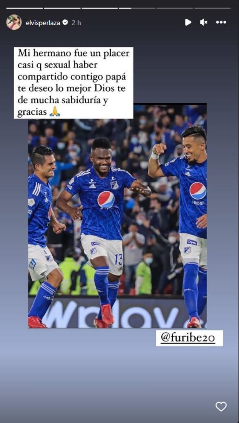 “Mi hermano, fue un placer casi que sexual haber compartido contigo, papá. Te deseo lo mejor. Dios te dé mucha sabiduría y gracias”, publicó el lateral en su cuenta de Instagram.