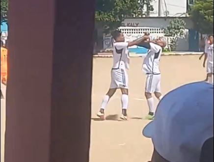 “😳¡PUÑO VA, PUÑO VIENE! 😳 ▶️#Teo se fue peleó con un compañero del mismo equipo, con el que jugaba la Copa de Campeones en la cancha de Simón Bolívar”, compartió la cuenta del Vbar de Caracol Radio junto al video.