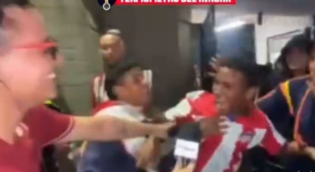 De inmediato, procedió a seguir contando, después de reclamar, alcanzó a decir “Mi mamá cumplía el 9, ese partido fue el 8…”, cuando, de repente, otro jalonazo llegó desde el otro costado para sacarlo de plano y otro empujón lo llevó para el otro lado.