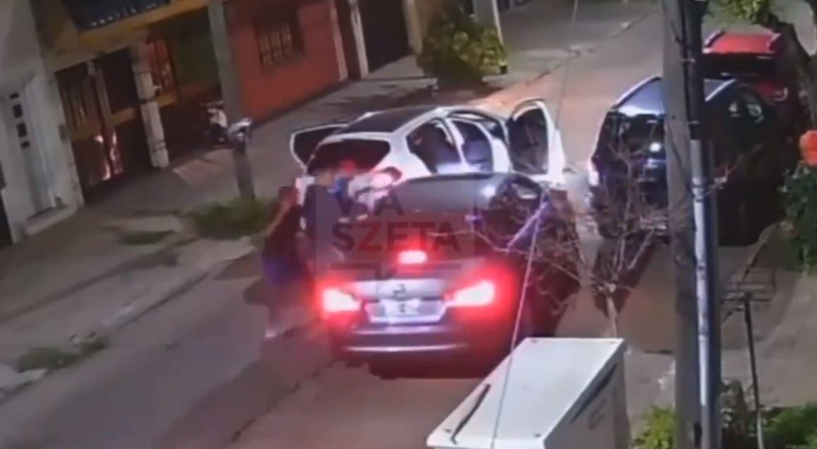 En las imágenes se observa que el vehículo que está parado a un costado de la calle es interceptado por tres hombres armados que se bajan de otro automóvil de color blanco y se van contra las víctimas.