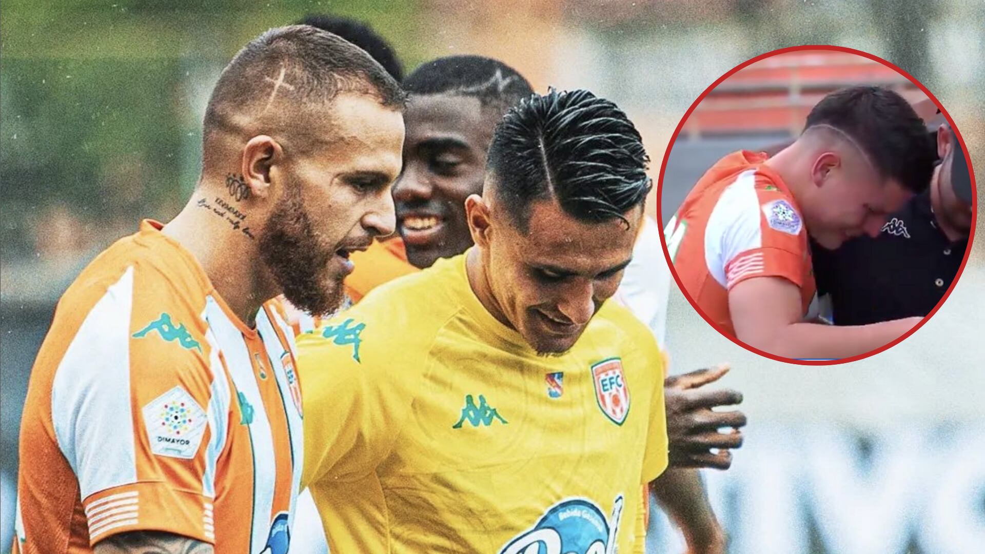 Poco después, cuando ya estaba en el banco de suplentes, pudo vérsele completamente desconsolado mientras abrazaba al médico del equipo paisa.