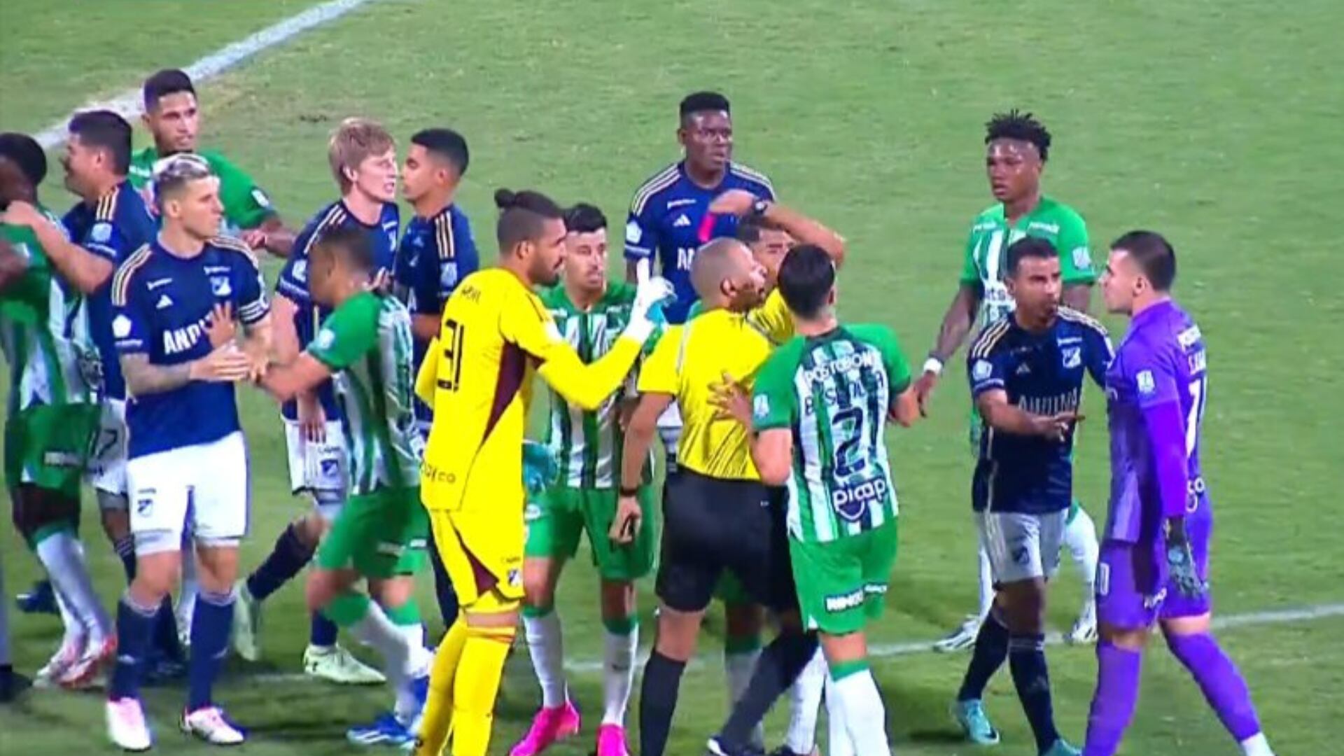 Los arqueros de Millonarios y Atlético Nacional se pelearon frente al árbitro y terminaron expulsados. Después de un choque entre jugadores de ambos equipos, los guardametas fueron a ‘buscar pelea’ en medio de la trifulca que se armó. Sorpresivamente, el juez decidió mostrarles la roja directa a los dos, lo que cambió por completo los planes de juego de ambos entrenadores.