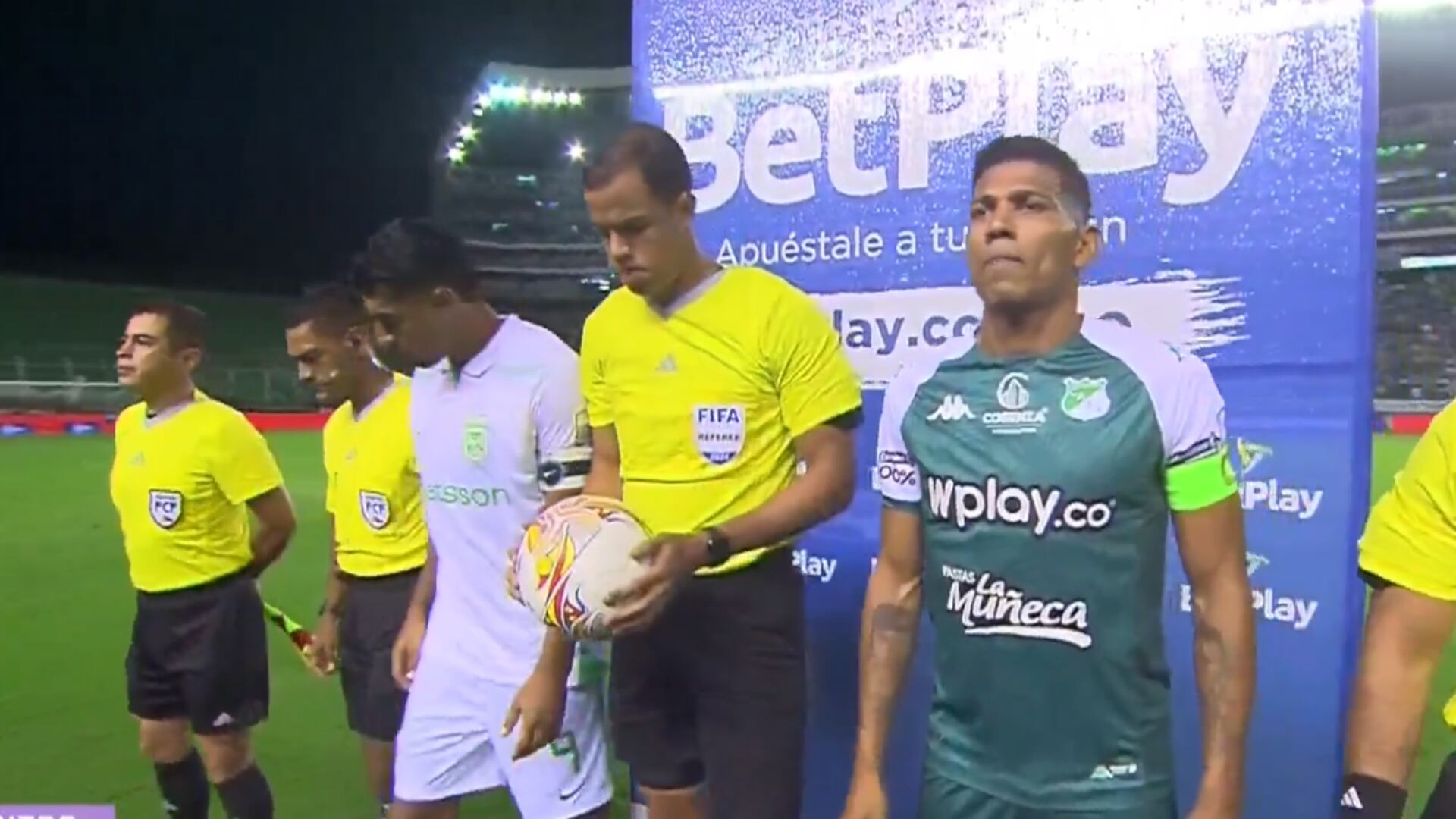 El pasado 16 de febrero, Cali enfrentó a Nacional en el Estadio de Palmaseca. En los actos protocolarios del encuentro, Jefferson Duque, capitán del ‘Verdolaga’, y Alex Mejía, capitán el ‘Azucarero’, se reunieron con el árbitro para definir el saque.