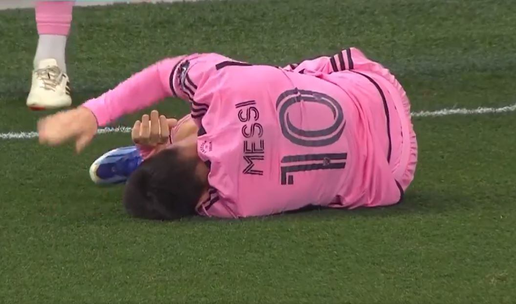 Fue el defensor Lukas MacNaughton el que impactó directo contra la pierna del astro argentino que quedó revolcándose del dolor ante el fuerte impacto.