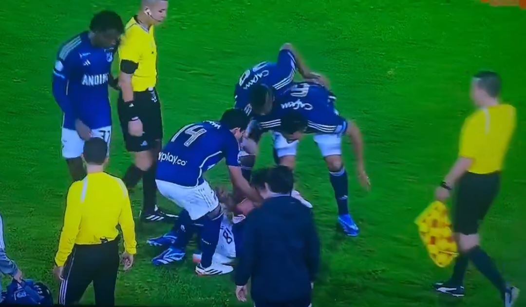 Una escena dantesca se dio en medio del clásico capitalino ante Independiente Santa Fe en donde el jugador se fue al piso en los minutos finales.