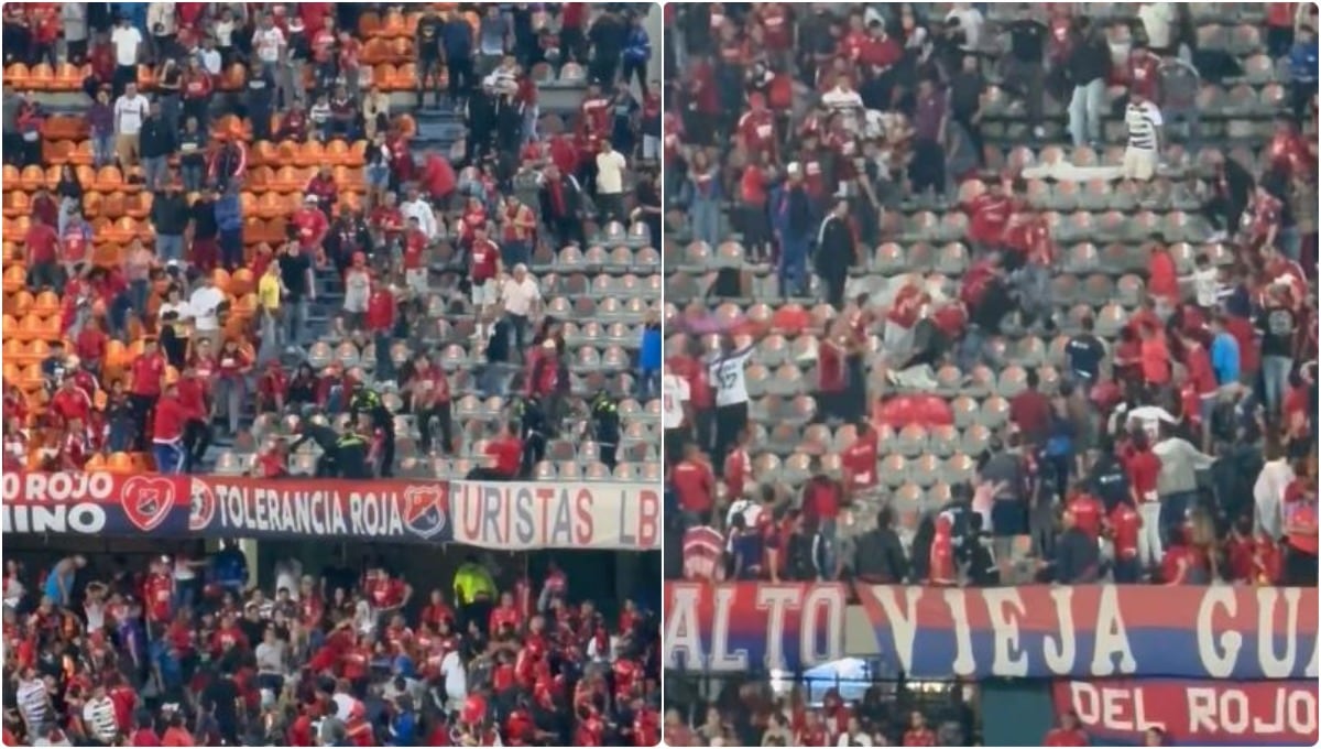 De acuerdo con el periodista Dilan Orjuela, uno de los que subió las escenas, las mismas fueron entre aficionados de ambos equipos.