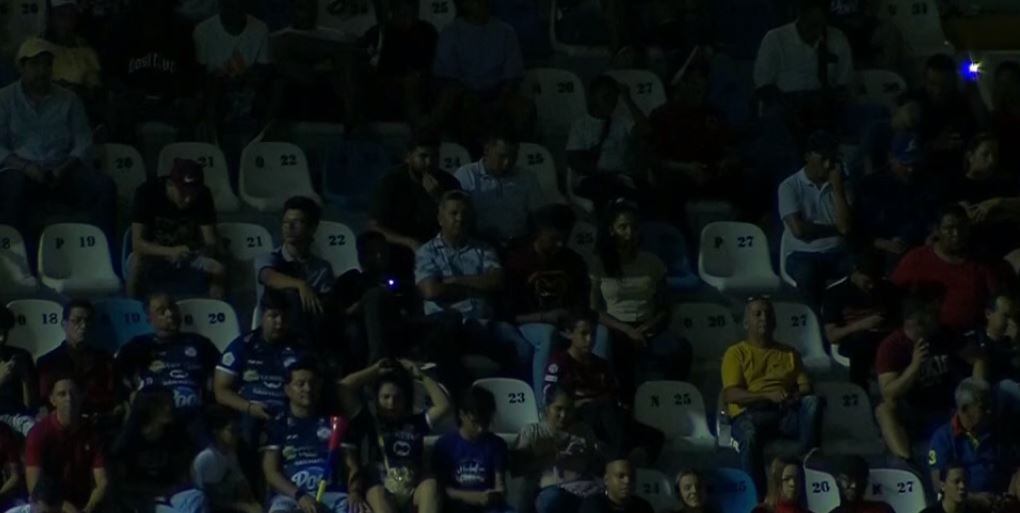 Cuando la transmisión dio paso al estadio de la ciudad de Valledupar, quedó en evidencia el apagón que impidió dar inicio a la hora estimada.