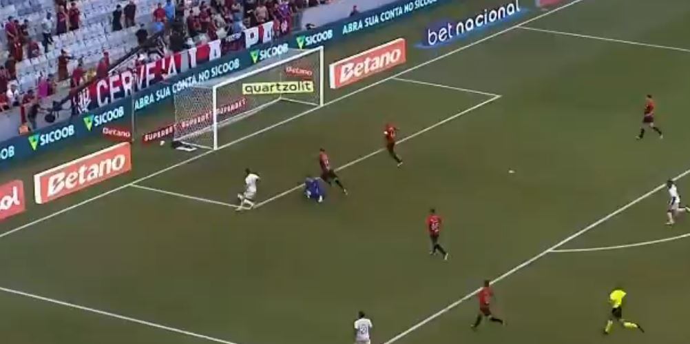 El colombiano se perfiló y de primera intención remató, pero su disparo fue contra la humanidad del guardameta Bento. Sin embargo, el balón le volvió a quedar al colombiano que tenía el arco vacío, pero en ese momento remató sin la potencia ni la dirección indicada y un defensor llegó para sacar el balón antes de entrar.