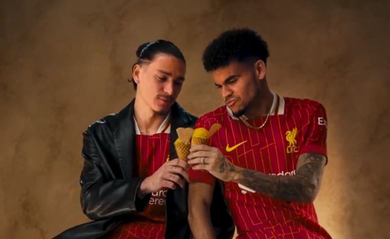 La escena en la que aparece el guajiro está en compañía del uruguayo Darwin Núñez con el que aparecen disfrutando de un helado con el que ‘brindan’, mientras lucen la nueva camiseta.