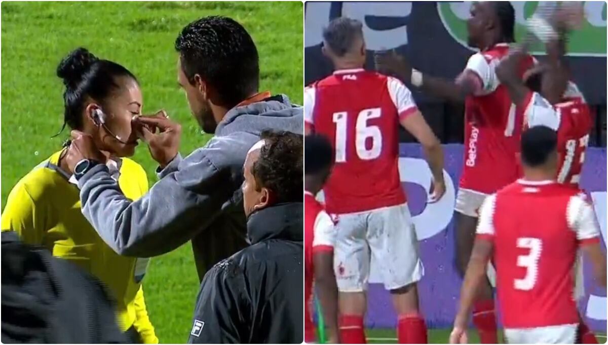 La juez de línea, Jenny Torres, fue impactada con una moneda lanzada desde la tribuna que la impactó en su rostro, muy cerca de uno de sus ojos.