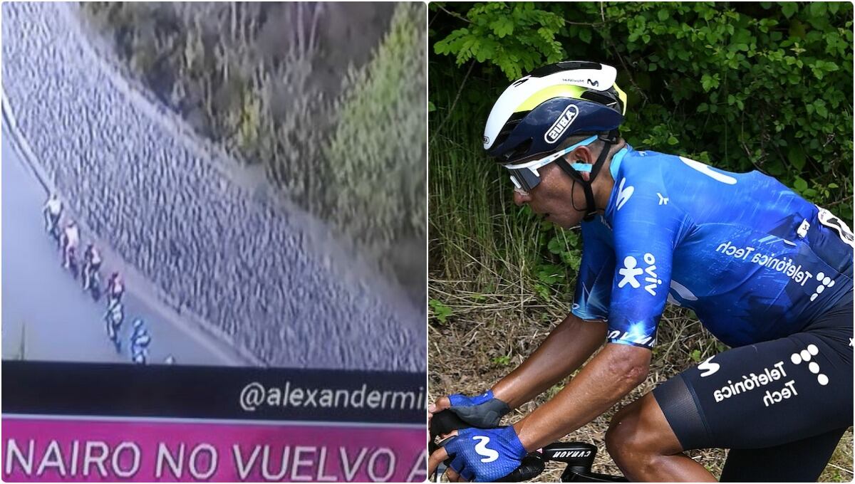 Nairo Quintana volvió a emocionar a muchos con su actuación en la etapa 15 del Giro de Italia y entre tantos mensajes de aliento que le enviaron se coló uno bastante gracioso en la pantalla de RCN.
