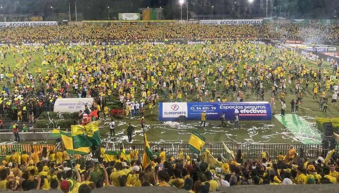 3) Finalizado el partido, estando los equipos y los árbitros aun en el terreno de juego, ingresaron los hinchas del Bucaramanga a celebrar con sus jugadores”.