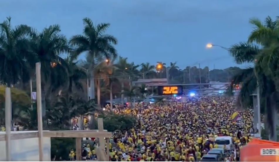 Las dos calzadas de una avenida estaban copadas de hinchas colombianos expresando todo su aliento.