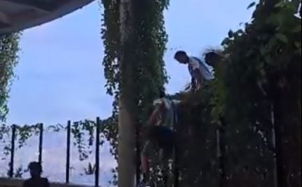 En las imágenes se logran ver a varios hinchas argentinos trepando muros y mallas para entrar al escenario deportivo sin boletas.
