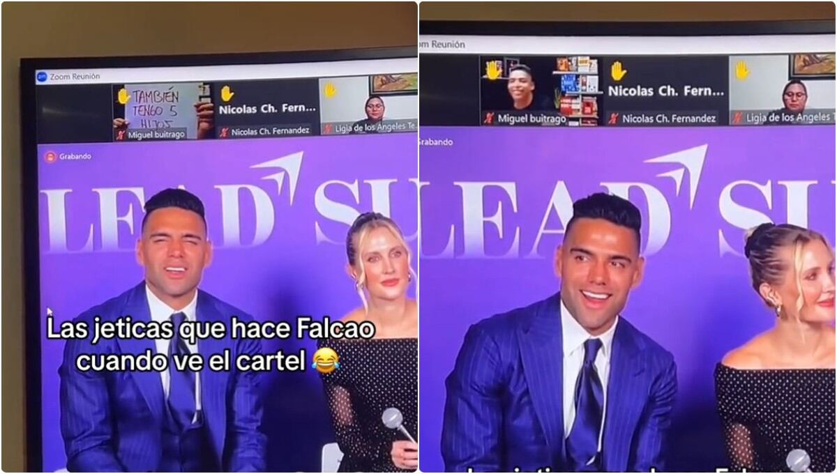 En las imágenes, primero se observa a Radamel haciendo ojitos para tratar de leer el mensaje que le habían puesto en pantalla “También tengo 5 hijos” y luego de captarlo, no pudo disimular ni aguantar la risa ante las ocurrencias del joven.