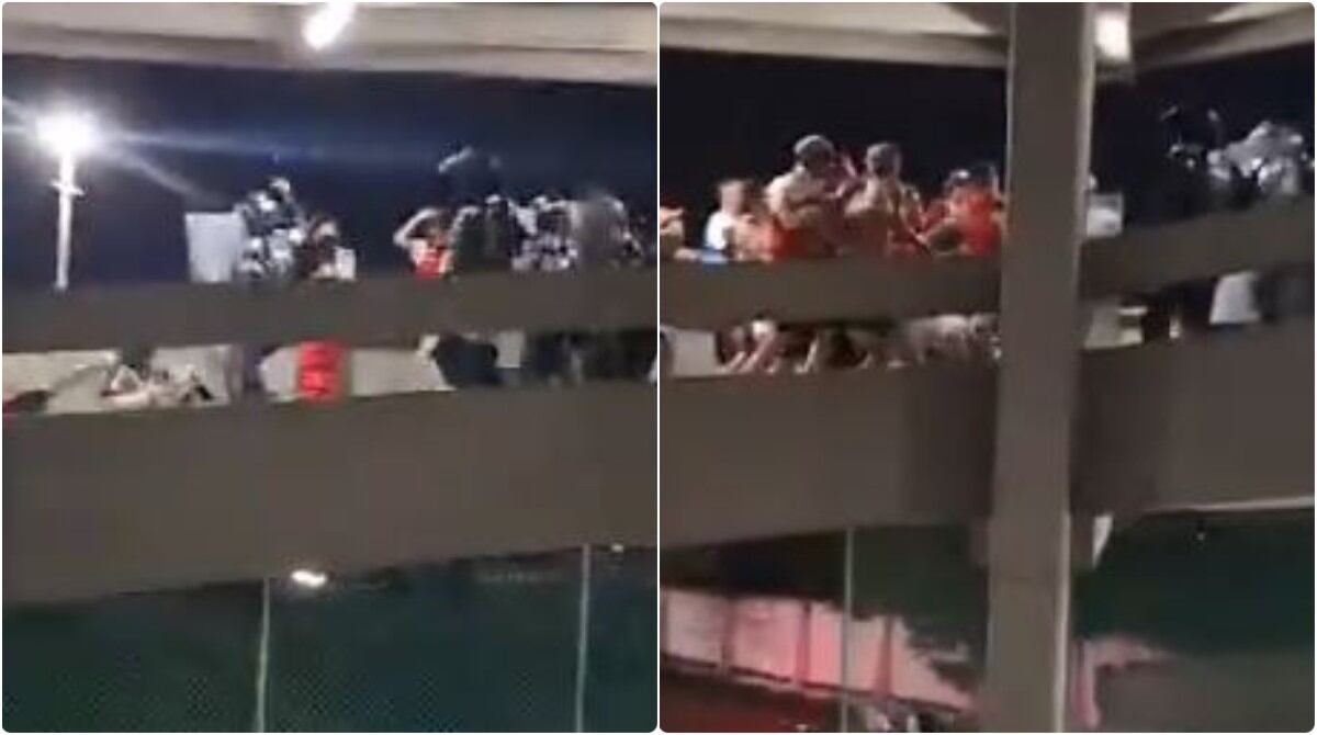 En las imágenes se logra ver como los hinchas son desalojados por la rampa de acceso a punta de bolillo. También se observa que algunos aficionados lanzaron objetos contra los uniformados, pero allí no para todo.