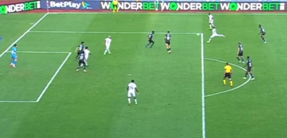 Sobre el minuto 65, Dayro Moreno aprovechó un rebote que le quedó flotando y desde fuera del área tomó el balón de aire para fajarse una media volea que se fue al fondo de la red. Golazo.