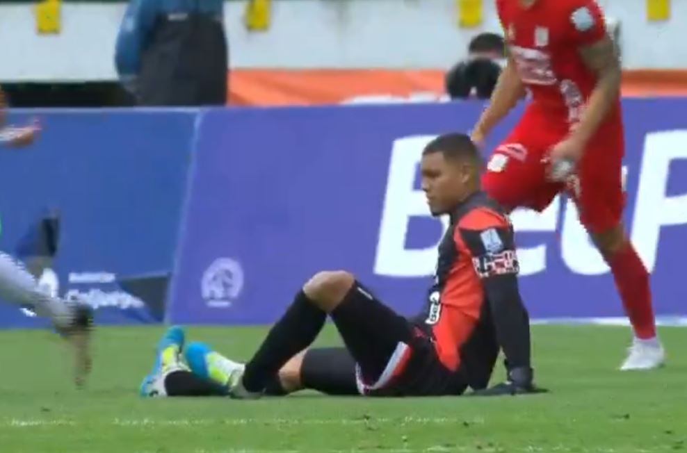 El vuelo del guardameta se vio suspendido y cayó de espalda al terreno de juego con evidente dolor. Tras ponerse en pie quedó en evidencia el desajuste de su rodilla que se salió de lugar.