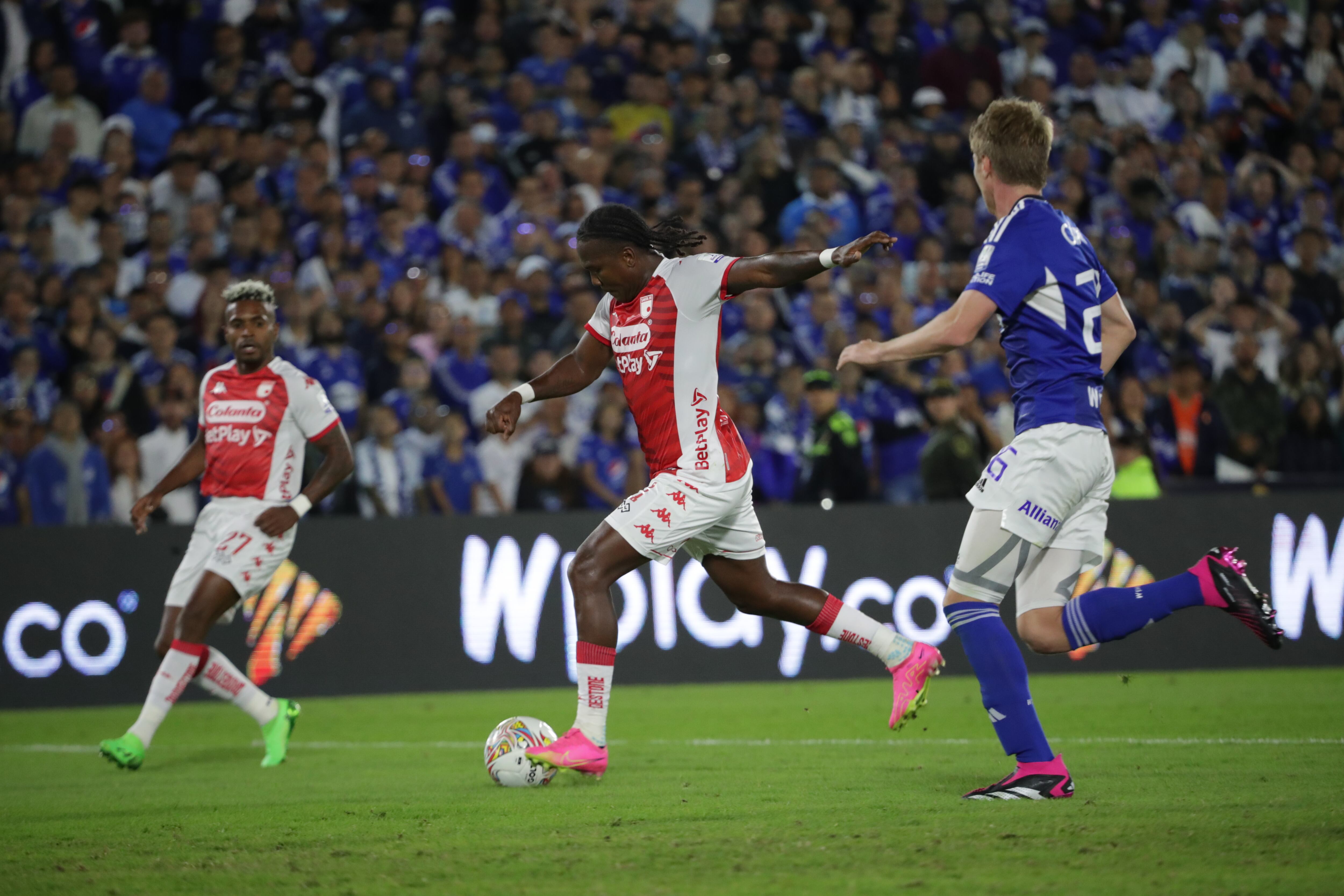 Las tribunas del Estadio El Campín se teñirán de rojo para el encuentro número 316 entre ‘Leones’ y ‘Albiazules’, que, además, podría certificar la clasificación a cuadrangulares de Santa Fe o sacar parcialmente de las ocho primeras casillas a los dirigidos por Alberto Gamero.