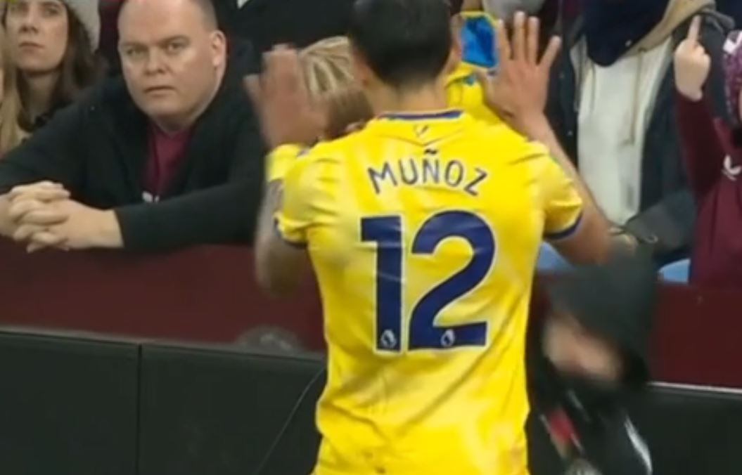 Daniel Muñoz, jugador del Crystal Palace, recibió un gesto para nada agradable de un pequeño aficionado de Aston Villa que le hizo el popular gesto de mostrar los dedos del medio, a dos manos, sobre el final del partido.