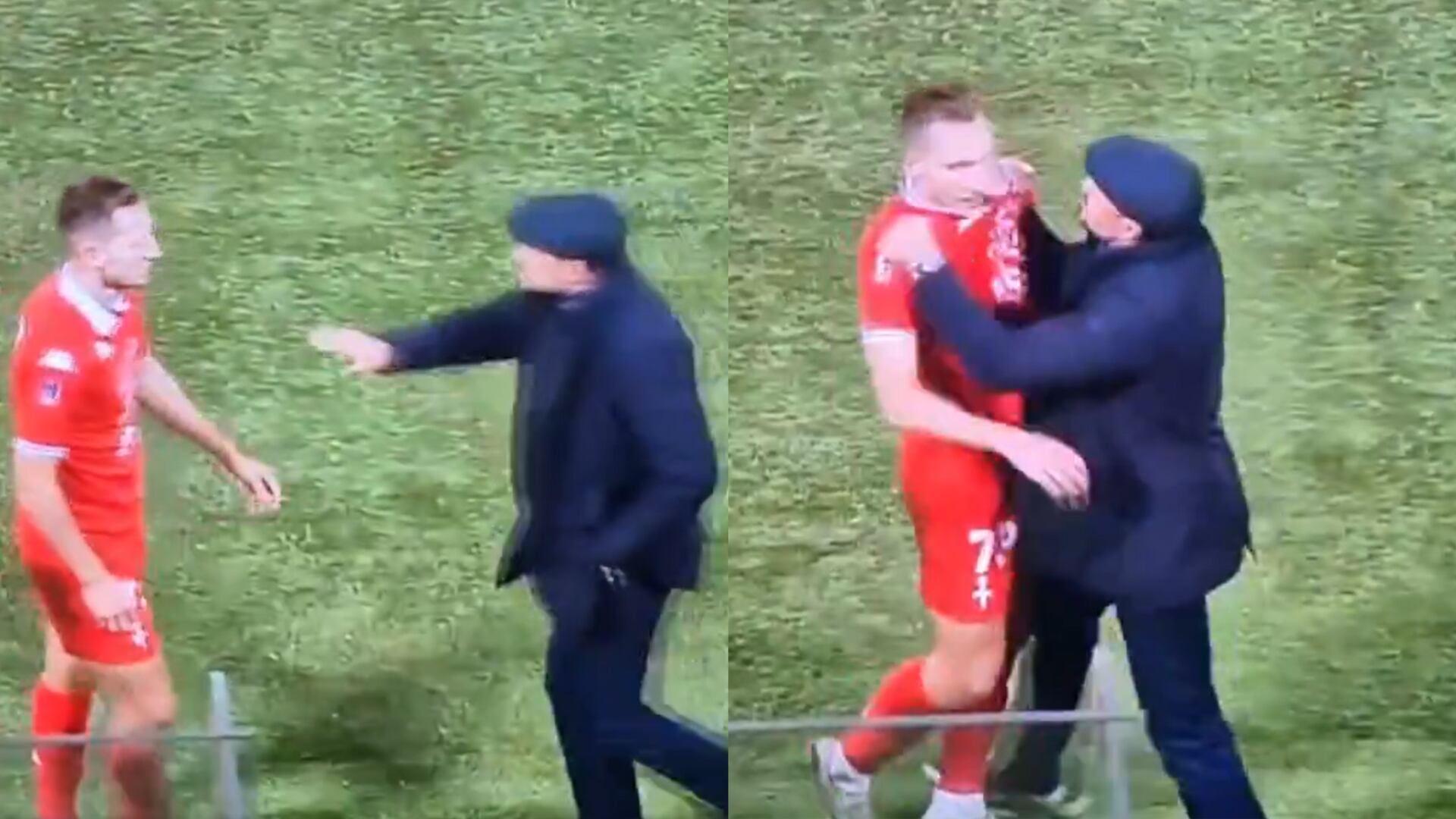 Luego de que el futbolista se estuviera retirando de la cancha, fue recibido por su entrenador, quien de inmediato se abalanzó sobre él y comenzó a agarrarlo de la camiseta una y otra vez. Pese al repetido suceso, el jugado optó por no reaccionar y simplemente se dejó ‘zarandear’ de su DT, mismo que al parecer podría ser despedido de su cargo, e incluso, recibir una fuerte sanción por parte de la Federación Italiana de Fútbol.