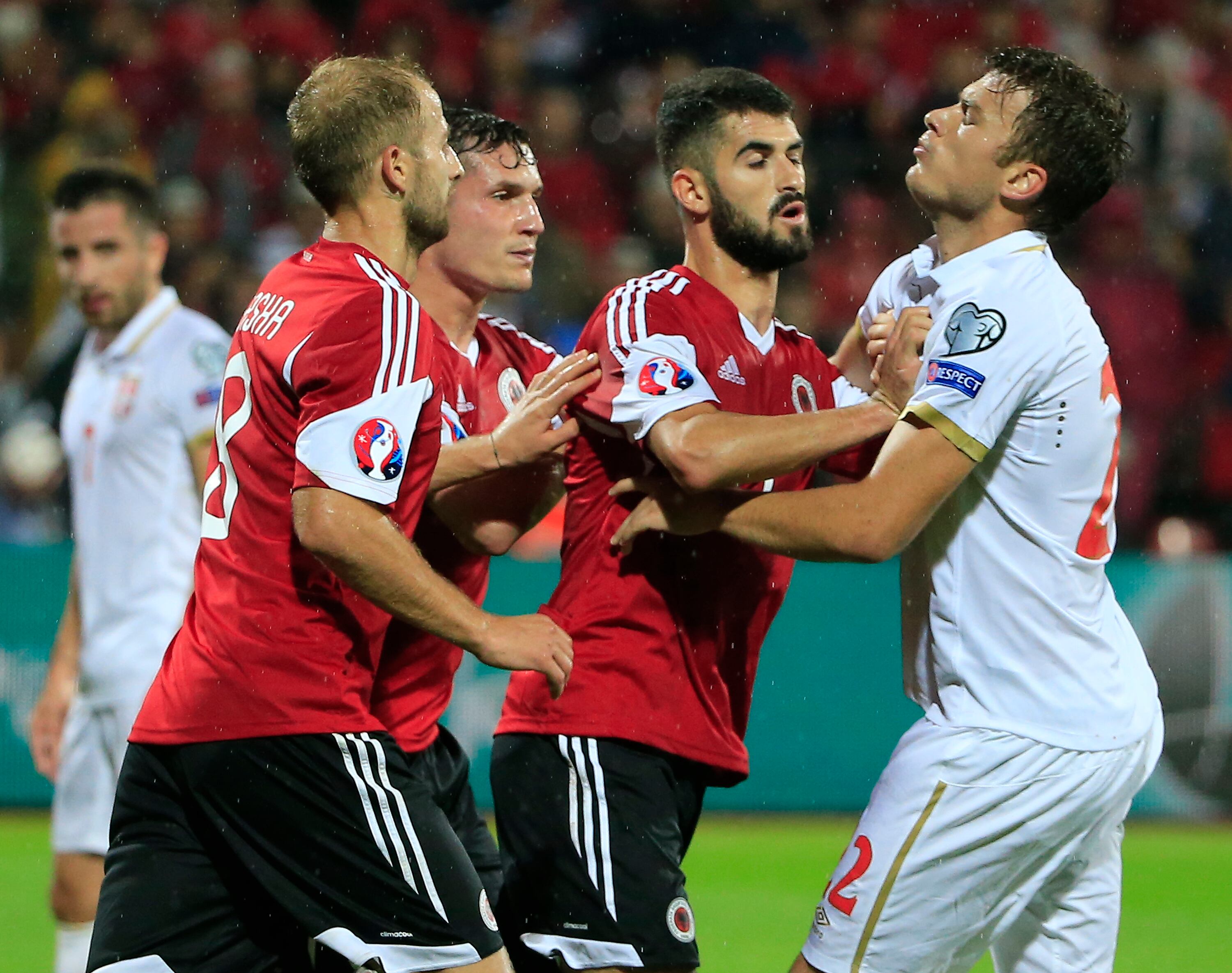 La última vez que se enfrentaron ambos países, fue en las eliminatorias a la Eurocopa 2016, pero entonces, el partido no se pudo jugar hasta el final por un artefacto volador que apareció con la bandera de Albania en plena cancha. El serbio Stefan Mitrovic recogió la bandera para bajar el aparato, entonces los jugadores albaneses lo empujaron y comenzó una gran pelea. Por el escritorio, Albania perdió el partido 0-3, pero a Serbia le quitaron los tres puntos.