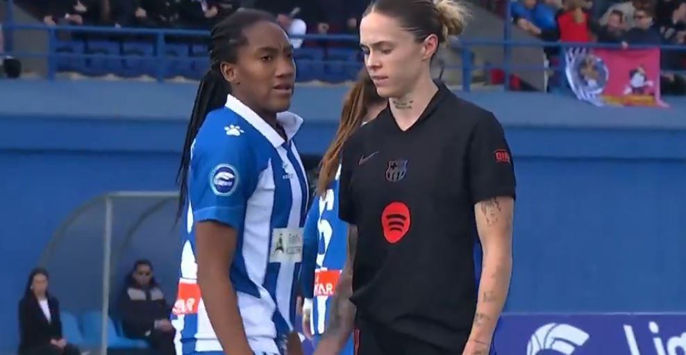 Repudiable acto de Mapi León contra la colombiana Daniela Caracas en pleno terreno de juego que genera indignación en el fútbol español y que muchos piden sea castigado como un hecho de agresión sexual.
