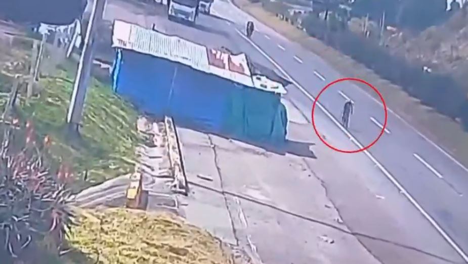 Noticias Caracol compartió imágenes de una cámara de seguridad del sector en la que se observa la camioneta que se encontraba arreglando la vía y posteriormente el paso del deportista.