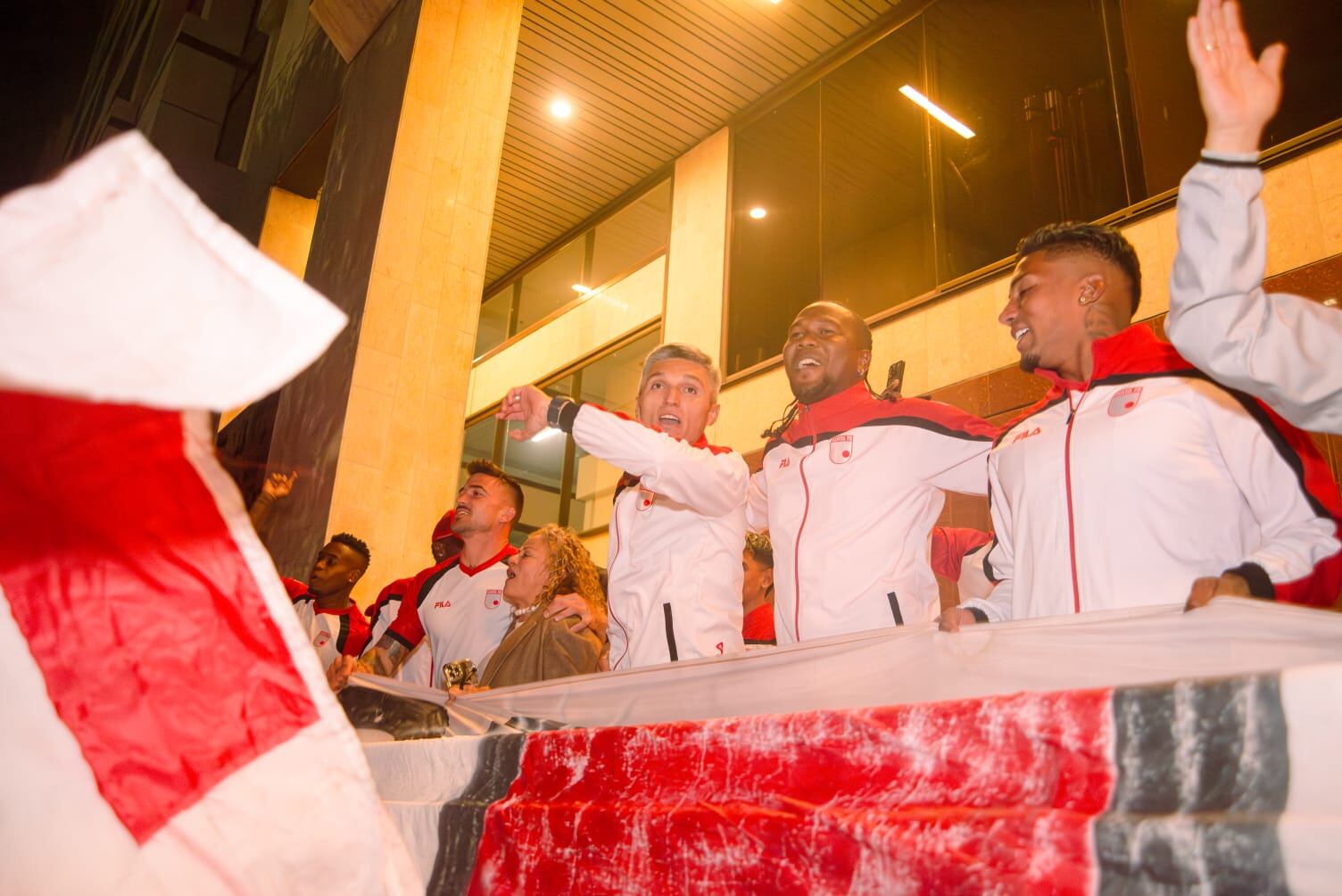 Los jugadores salieron a atender a los aficionados que llegaron hasta el hotel y Hugo Rodallega se tomó la vocería en nombre del equipo para dejar claro que la unidad en Santa Fe es lo más importante: