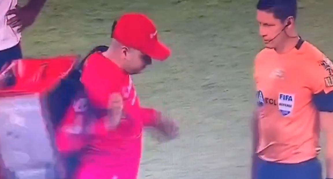 Domiciliario se robó el show al entregar un pedido al árbitro en pleno partido