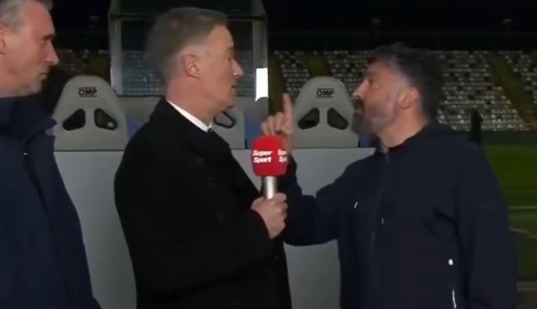 Genaro Gattuso, DT del Hajduk Split, de Croacia, protagonizó una acalorada discusión con Joško Jeličić, exfutbolista y ahora comentarista de televisión de ese país europeo al que encaró en pleno set de televisión montando al borde del terreno de juego.