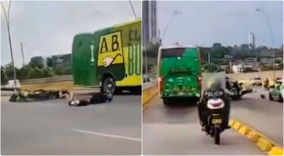 La situación se dio en el sector del viaducto de la ciudad de Bucaramanga, en donde una motocicleta de la policía se ubicó en plena avenida, para intentar frenar el paso del tráfico y que así el autobús se incorporara a la vía, tras su tránsito por el carril exclusivo de Metrolínea. Sin embargo, en ese justo instante y debido a ser el carril rápido, el conductor de otra motocicleta no alcanzó a frenar y terminó arrollando a los dos uniformados.