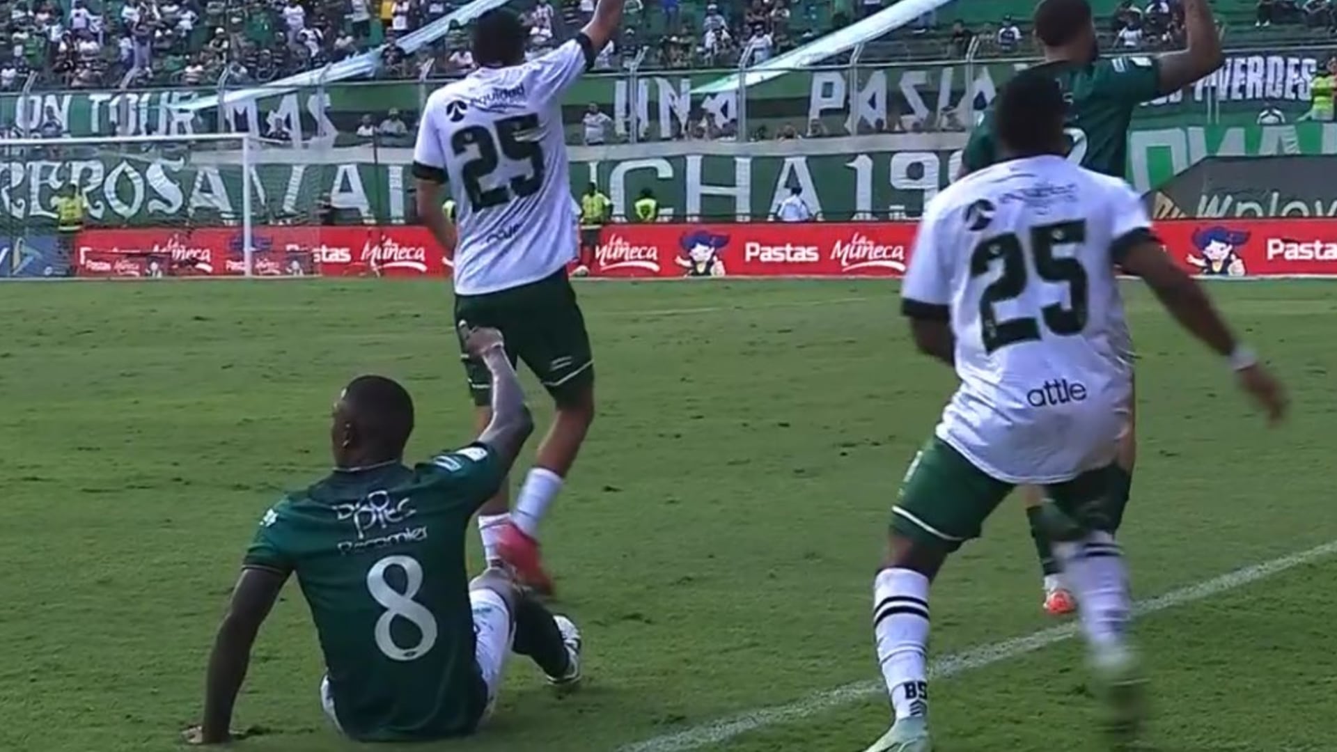 Al inicio del partido, todos los jugadores portaban de manera correcta sus uniformes, pero una gran confusión se presentó cuando el mencionado Beckham David tuvo que salir del juego por una lesión. Entonces fue turno de Santiago López, cuyo número es el 25.