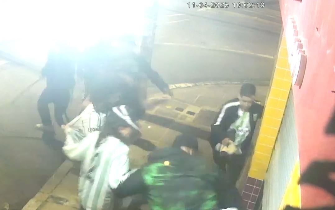Cámaras de seguridad del sector registraron una parte de la riña que se presentó entre hinchas de Atlético Nacional en Porto Alegre, Brasil, en donde el joven Alejandro Lopera fue asesinado.