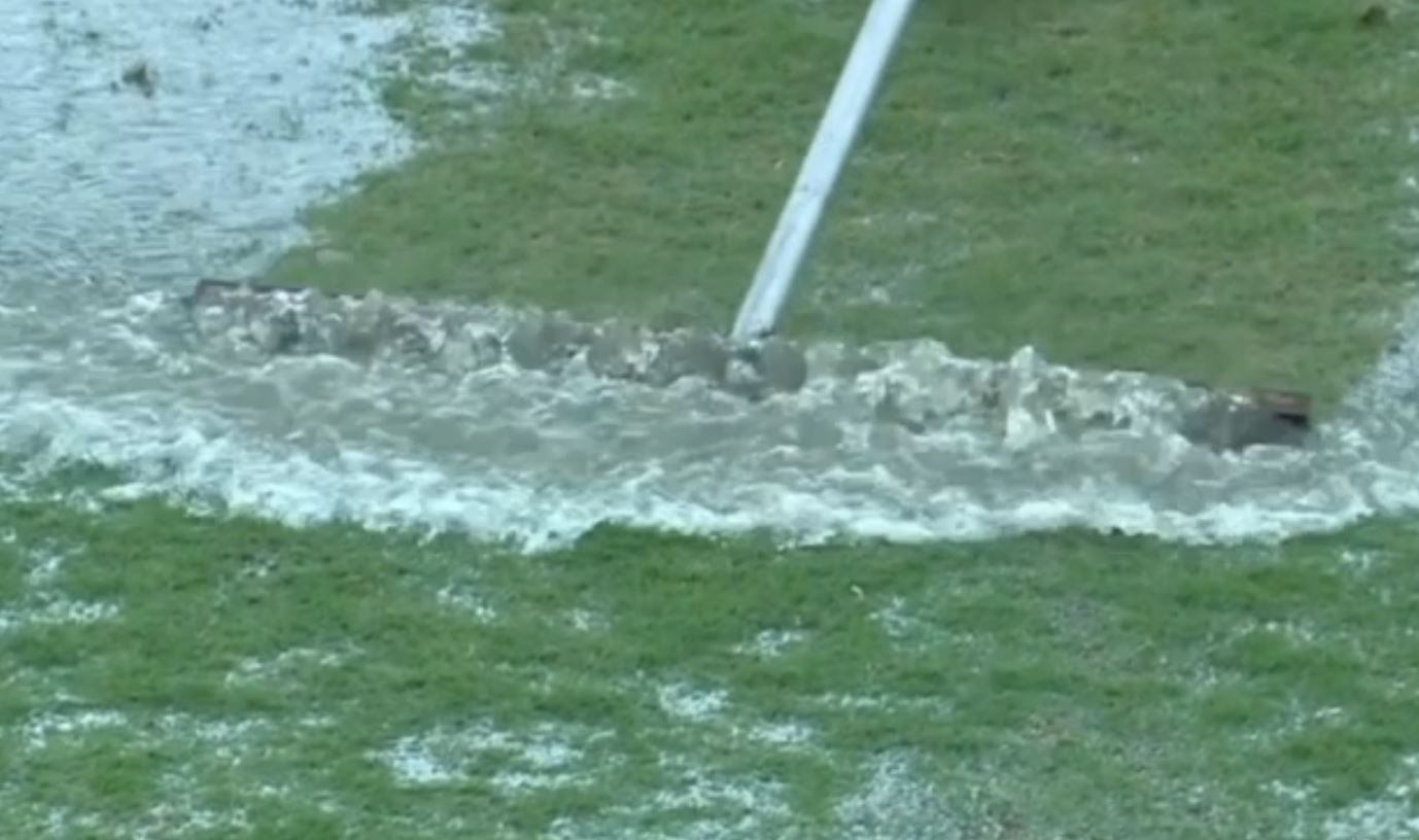 Las imágenes de televisión dejaron ver a los funcionarios del estadio Polideportivo Sur tratando de ayudar al drenaje en la evacuación del agua.