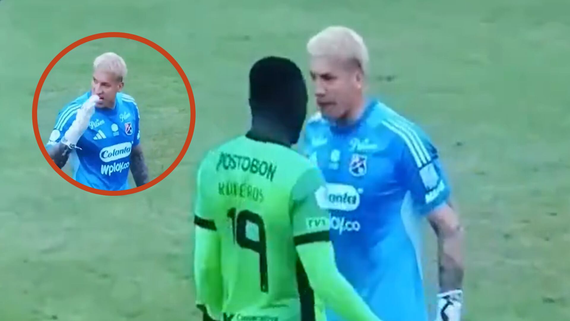 Sobre el minuto 25 del clásico paisa se presentó un momento de calentura entre Washington Aguerre, portero de Independiente Medellín, y Kevin Viveros, delantero de Atlético Nacional.