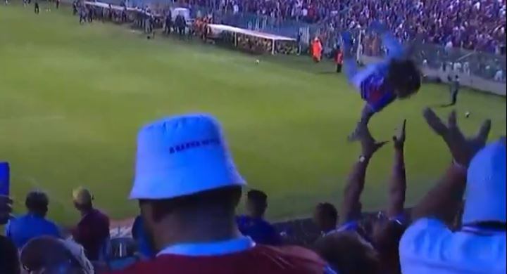 Una escena de esas bizarras nos dejó el fútbol, en esta ocasión el de Brasil, en el presente fin de semana en donde un aficionado no tuvo ningún problema en lanzar a volar a su hija para celebrar uno de los goles de su equipo.