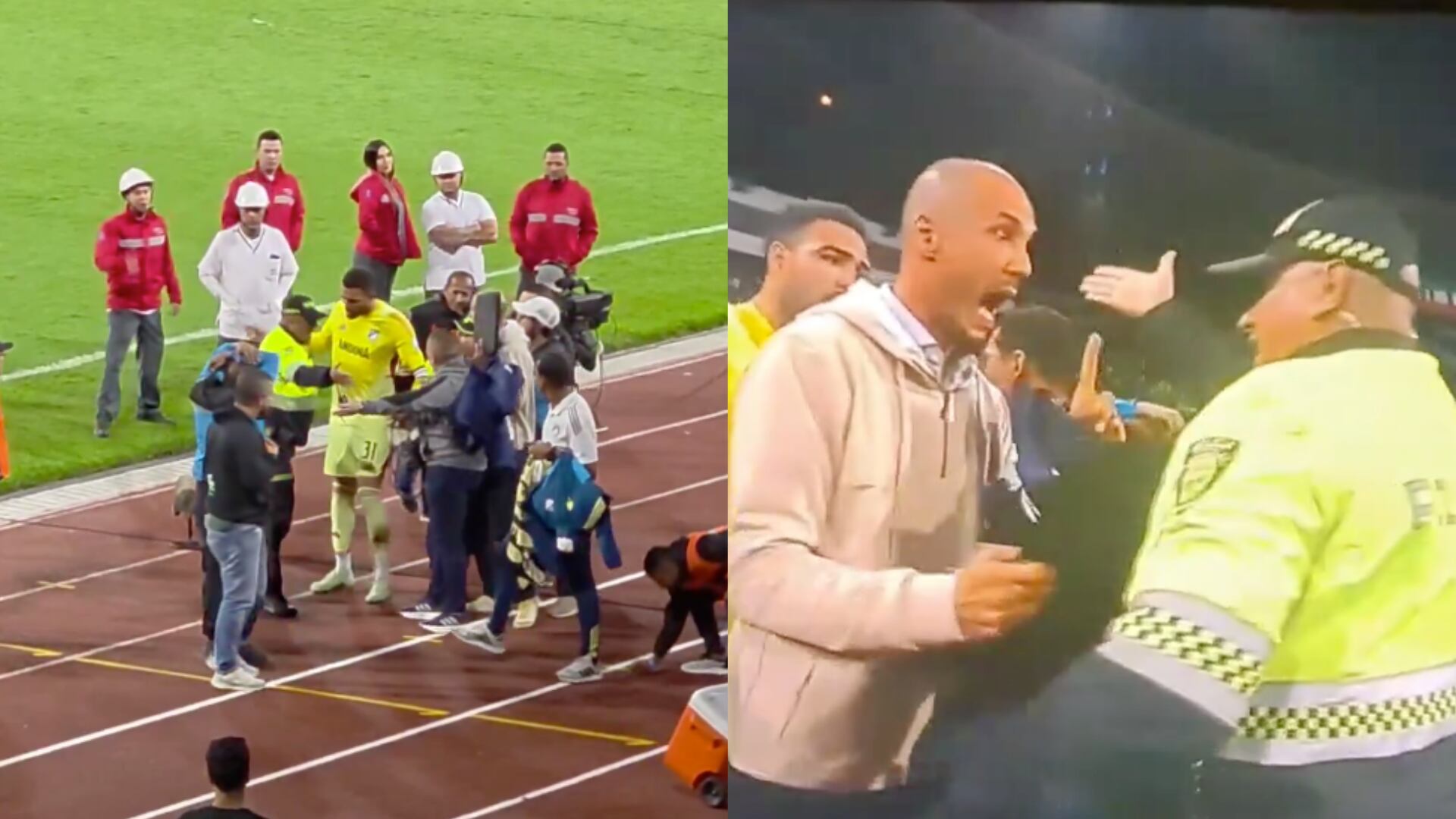 Y es que en video quedó registrado como, en medio de su salida de la cancha hacia el túnel, varios hinchas le lanzaban objetos, por lo que la policía debió acompañarlo para que no sufriera ataques más graves. En medio del recorrido, el golero decidió parar a recoger algunas monedas que estaban en el piso que proveían de los hinchas, donde uno de los agentes lo presiona a las malas para que salga y el guajiro se le para en la raya. Justo en ese momento, intercede David González, quien le decía al policía que al jugador no lo tratara así.