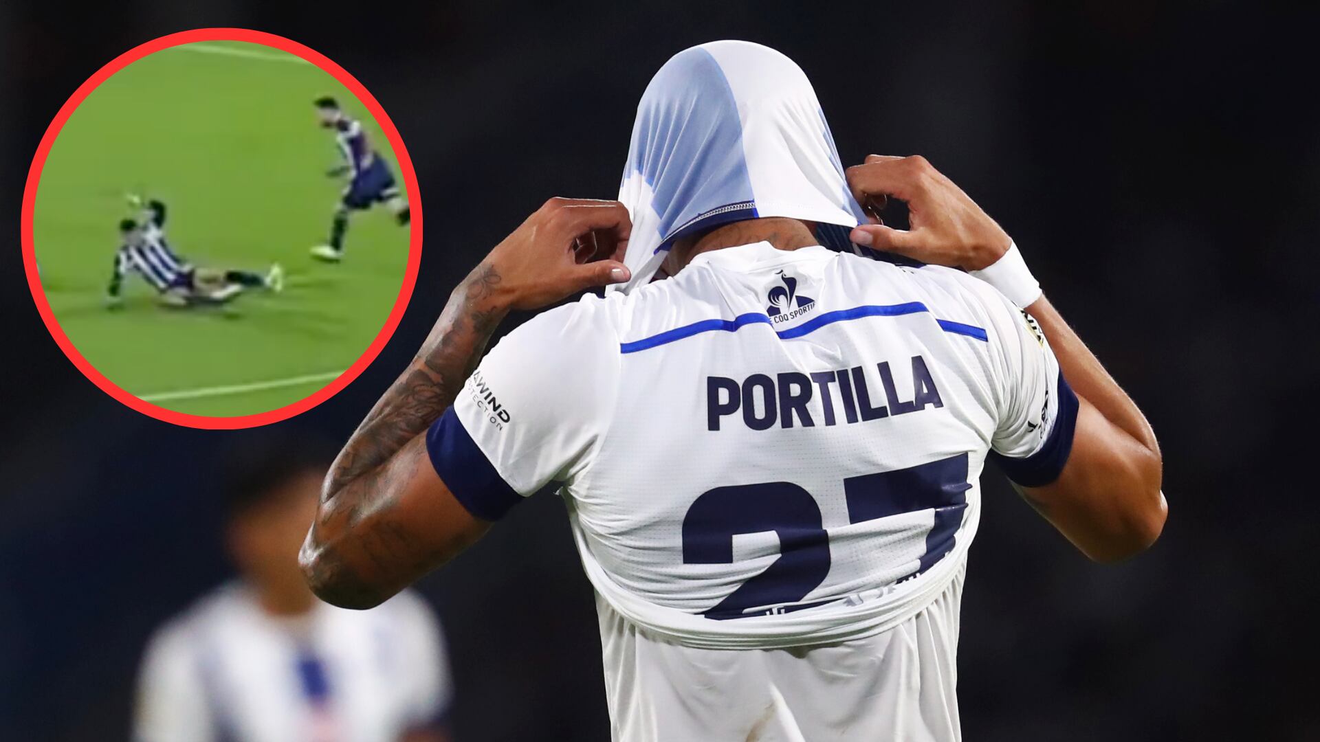 En la jugada, que la propia cuenta de la Copa Libertadores compartió en sus redes sociales por lo curiosa que resulta, se puede apreciar que Bustos intenta cruzarse al vertical ataque del colombiano. Sin embargo, el pie izquierdo de Portilla termina tropezándose con la pierna del futbolista argentino, quien rápidamente se da cuenta de su error e intenta enmendarlo al agarrar el balón.