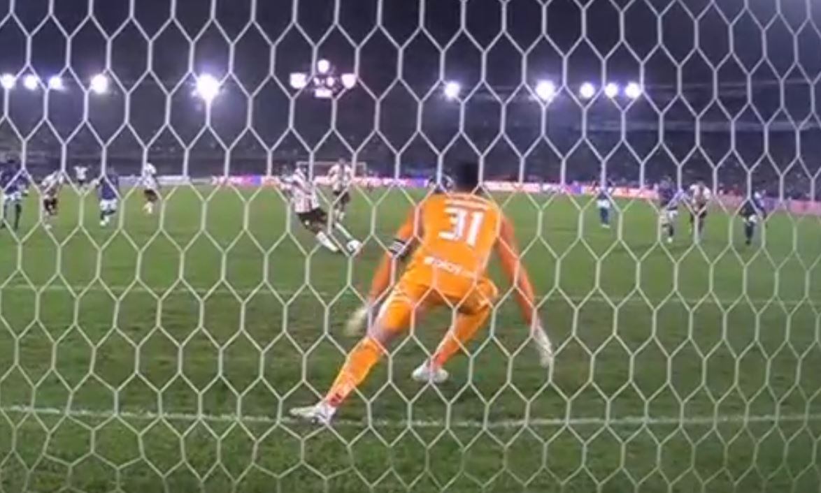 Si bien, el cobro no fue al arco, así hubiese ingresado, no se habría configurado como gol debido al doble toque que anula los penales.