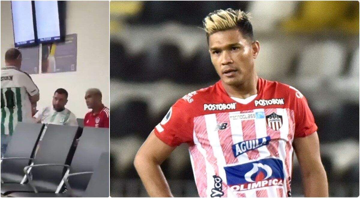 Fue en una sala del aeropuerto, donde ambas partes esperaban por el avión que los transportaría a sus respectivos destinos que se dio la curiosa escena, mientras un aficionado de Junior registró el momento.
