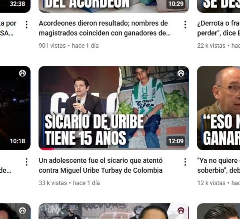 “Un adolescente fue el sicario que atentó contra Miguel Uribe Turbay de Colombia”, titula el video que dura más de 12 minutos y que cuenta con más de 33 mil vistas en donde su imagen de miniatura tiene la fotografía del herido senador junto a la de Daniel Muñoz en su etapa de barrista.