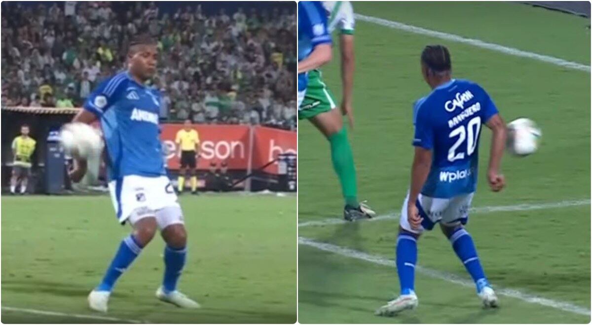El juego entre Atlético Nacional y Millonarios no estuvo ajeno a la polémica con una mano dentro del área de parte de Danovis Banguero que no fue sancionado como penal ni por el árbitro Bismark Santiago ni por el VAR.