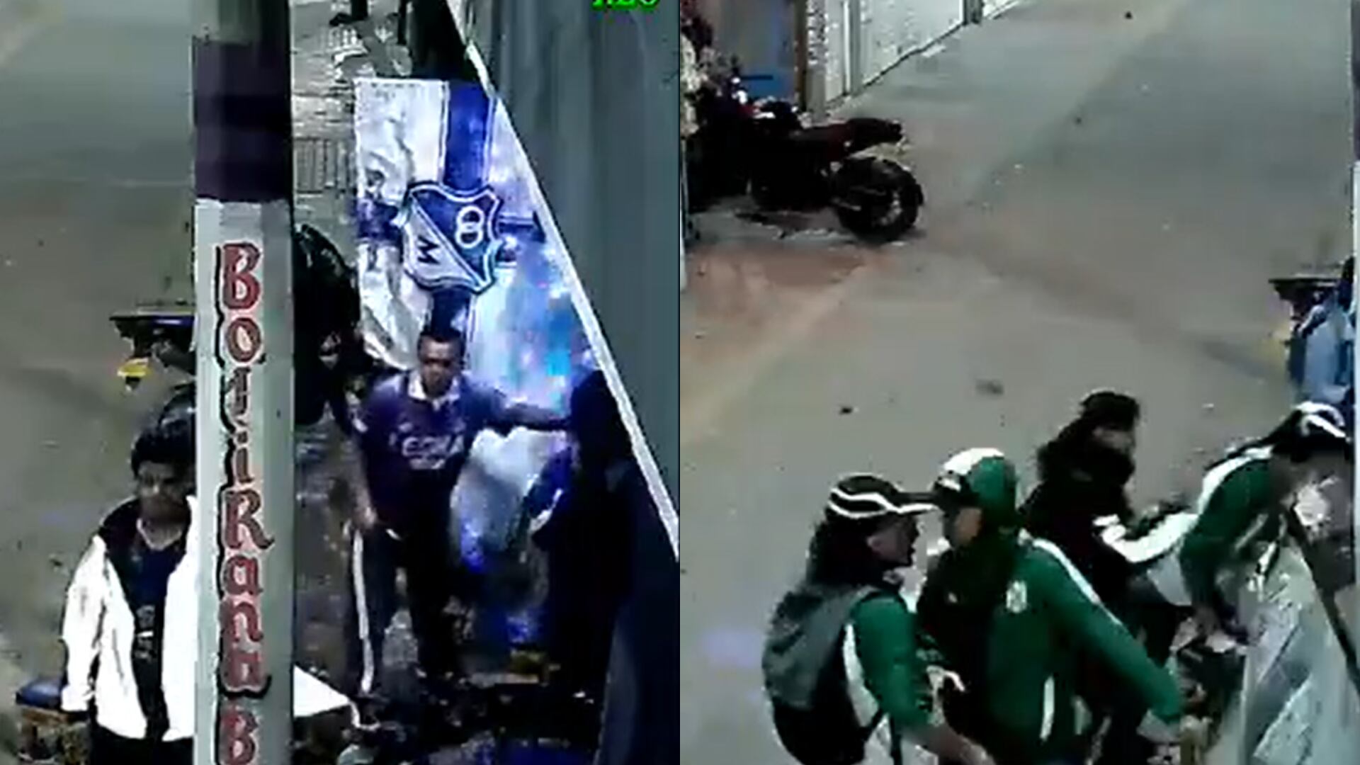 Ahora, en las últimas horas, parece que la violencia llegó hasta Bogotá, pues otro grupo de hinchas de Atlético Nacional atacó a varios seguidores que disfrutaban del partido en un bar de la localidad de Bosa, en Bogotá. Allí se observa como llegan los desadaptados con piedras y machetes, obligando a los aficionados a entrar al recinto y dejar sus objetos en la calle.