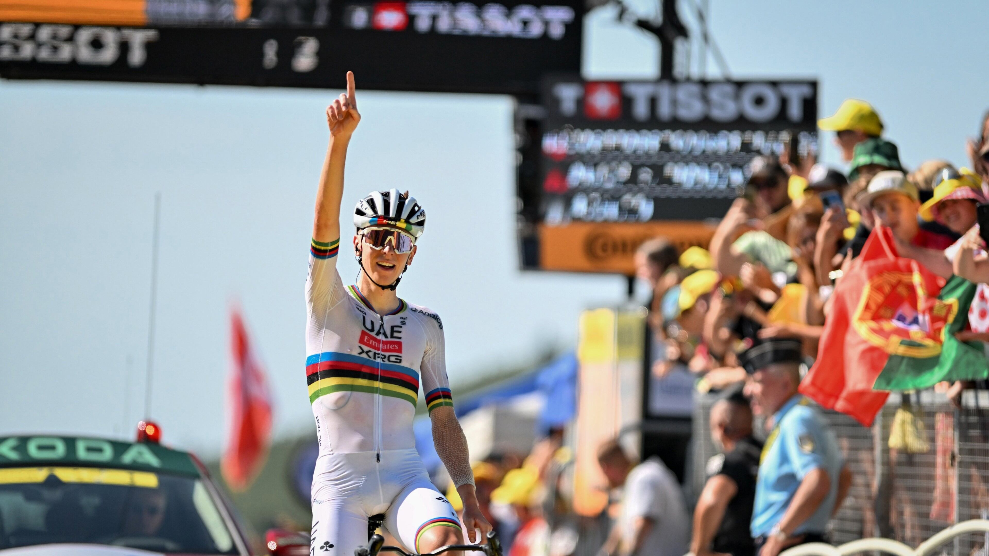 En la segunda posición de la general se encuentra el danés Jonas Vingegaard (Team Visma | Lease a Bike), quien ha luchado codo a codo con Pogačar en las cumbres, pero ahora se encuentra a 3 minutos y 31 segundos del líder. El joven belga Remco Evenepoel (Soudal Quick-Step) ocupa el tercer escalón del podio provisional, a 4 minutos y 45 segundos, demostrando su capacidad en la alta montaña. Completan el top cinco Florian Lipowitz (Red Bull - BORA - hansgrohe) y Kévin Vauquelin (ARKEA-B&B HOTELS), a 5′34′' y 5′40′' respectivamente, consolidándose como figuras emergentes de la carrera.