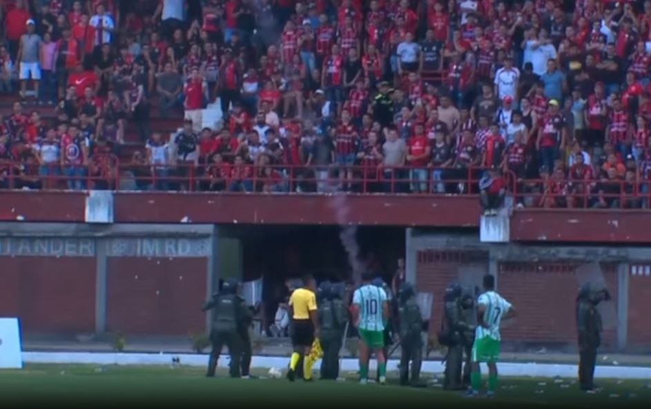 Pese a la agresión en la previa y que el jugador Alfredo Morelos fue herido, el cuadro antioqueño accedió a jugar el compromiso que tuvo escenas de mal comportamiento en pleno encuentro de parte de la hinchada local.