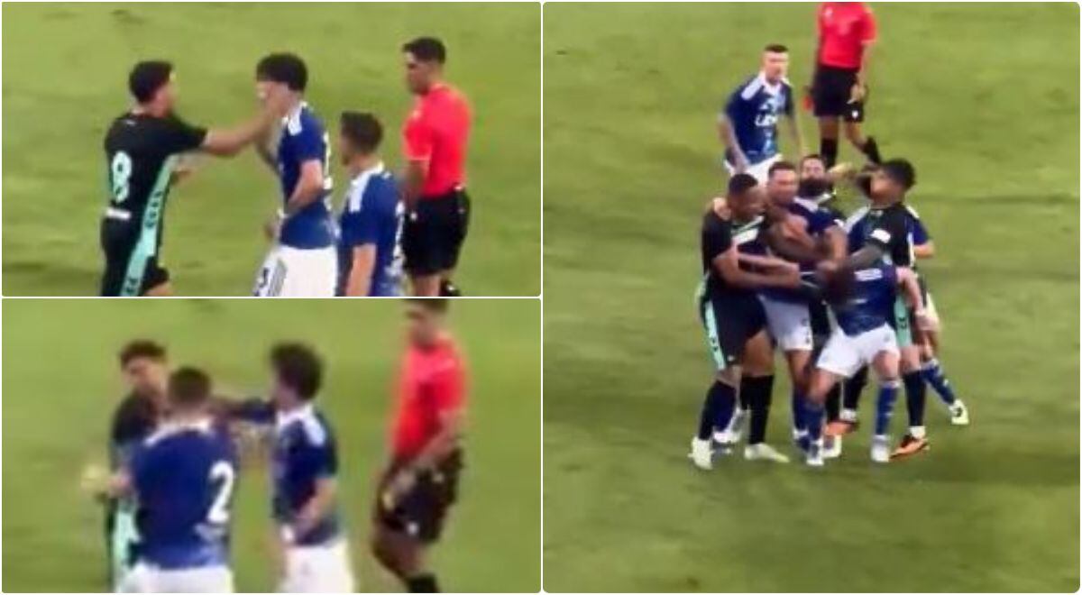 Todo se dio sobre el final de la primera parte, cuando el conjunto italiano ganaba 2-0 y tras dos fuertes entradas llegaron los reclamos que subieron de nivel cuando Máximo Perrone le dio un golpe en el rostro a Pablo Fornals y el español le respondió de igual manera, lo que desencadenó un intercambio de golpes y la intervención de otros jugadores de ambos equipos.