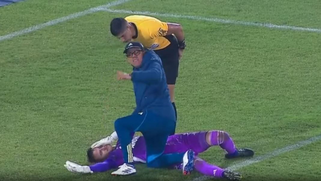 Durante su volada para tratar de evitar la anotación, el guardameta uruguayo chocó contra el vertical, situación que lo dejó afectado y debió abandonar el terreno de juego en camilla, directo a la parte interna del estadio Nemesio Camacho El Campín.