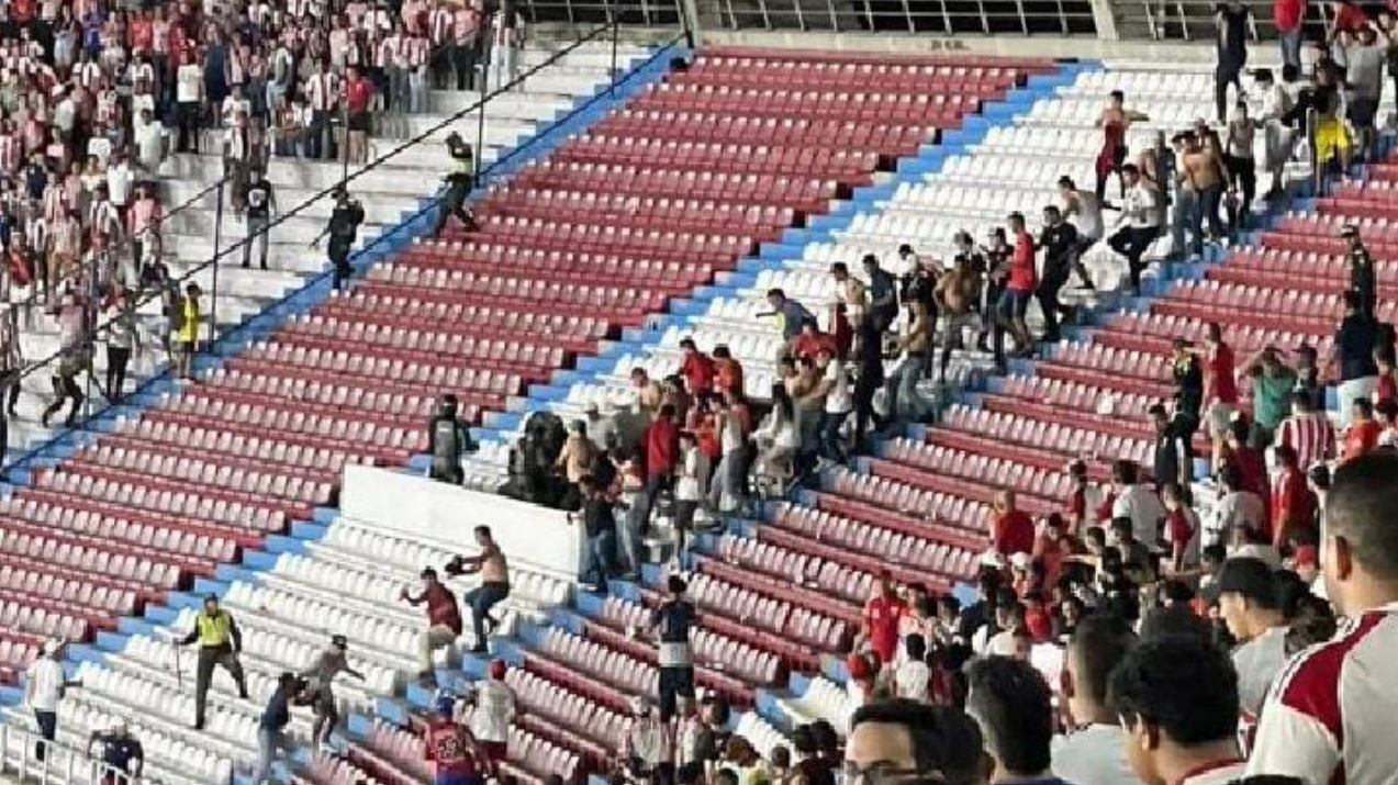 El encuentro por el fútbol colombiano se debió suspender unos minutos por incidentes en las tribunas en donde, pese a que estaba prohibido el ingreso de hinchas visitantes, varios de ellos asistieron, se agruparon y luego se desencadenó una pelea contra los aficionados locales.