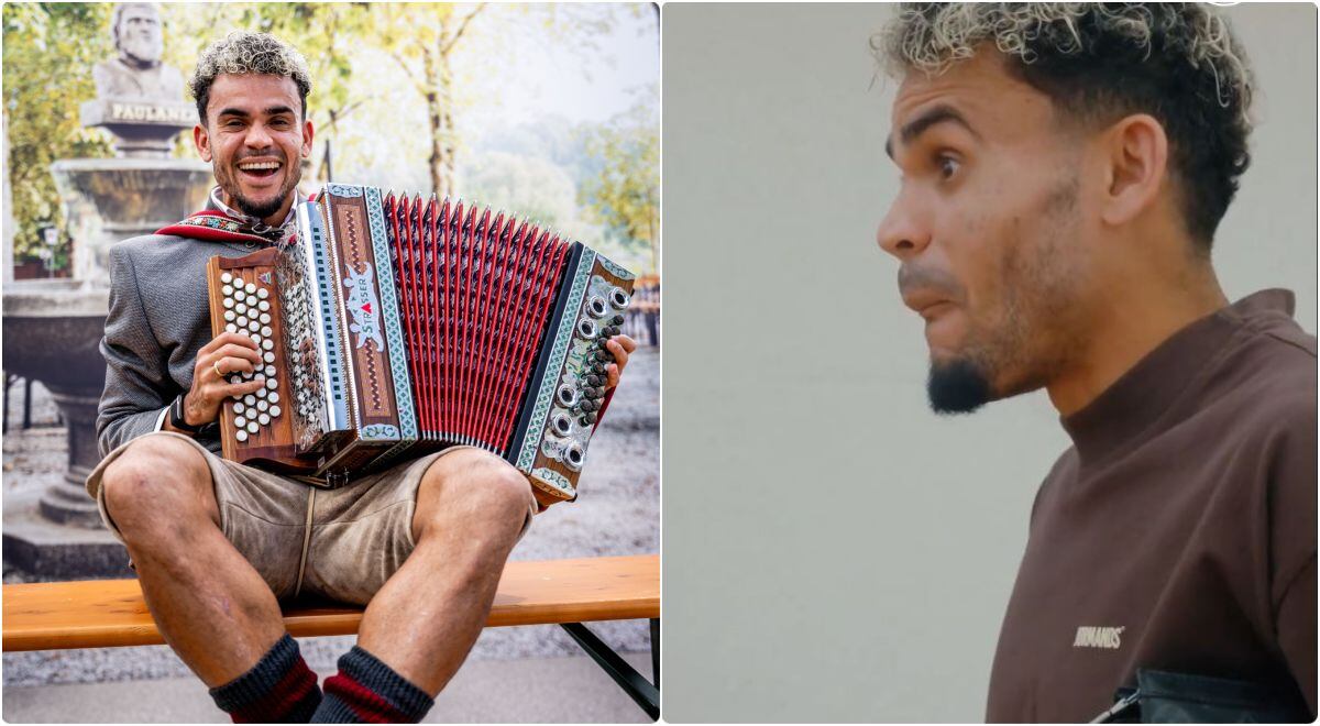 Luis Díaz lució como todo un bávaro mediante el rodaje de Bayern Múnich de cara al Oktoberfest y con Lederhosen puesto, apareció como protagonista de primer orden con el acordeón en mano para sacar algunos acordes.
